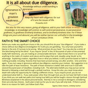 Sound Doctrine ELDON ADAMS | August 4, 2023 FAITH IS A SMART CHOICE …. It is all about due diligence. FAITH IS THE SMART CHOICE… It is all about due diligence. ← Jesus is Rejected at Nazareth ARE YOU READY FOR THE ANTICHRIST? →
