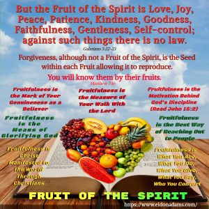 Uncategorized ELDON ADAMS | August 11, 2023 FRUIT OF THE SPIRIT ← ARE YOU READY FOR THE ANTICHRIST? DEATH IS THE FORK IN THE ROAD TO ETERNITY →