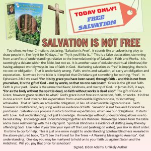 From the AuthorSound DoctrineSpiritual Blindness ELDON ADAMS | November 3, 2023 SALVATION IS NOT FREE ← THE SIN OF DISAGREEMENT FAITH AND WORKS (ORTHOPRAXY) →