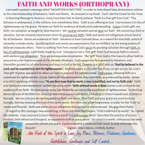 Bible ProphesyFrom the AuthorSound DoctrineSpiritual BlindnessTurning Away ELDON ADAMS | November 7, 2023 FAITH AND WORKS (ORTHOPRAXY) ← SALVATION IS NOT FREE HOPE, NOT DISAPPOINTMENT →