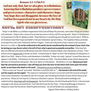 Bible ProphesyFrom the AuthorSound DoctrineSpiritual BlindnessTurning Away ELDON ADAMS | November 10, 2023 HOPE, NOT DISAPPOINTMENT ← FAITH AND WORKS (ORTHOPRAXY) THE GREAT TRIBULATION AND TURNING AWAY →