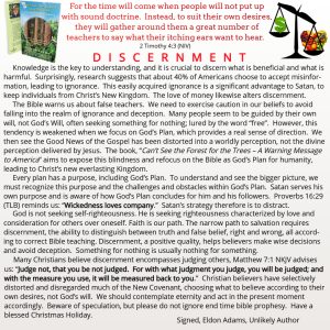 Bible ProphesyFrom the AuthorSound DoctrineSpiritual BlindnessTurning Away ELDON ADAMS | December 14, 2023 DISCERNMENT ← IF YOU CANNOT SEE THE PROBLEM, YOU WILL NOT SEE THE SOLUTION! THERE IS NO FEAR IN LOVE →