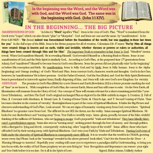 Bible ProphesyFrom the AuthorSound DoctrineSpiritual BlindnessTurning Away ELDON ADAMS | June 29, 2024 IN THE BEGINNING… THE BIG PICTURE ← FORSAKEN CURIOSITY KILLED THE CAT? →