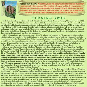 Bible ProphesyFrom the AuthorSound DoctrineSpiritual BlindnessTurning Away ELDON ADAMS | July 23, 2024 TURNING AWAY ← CURIOSITY KILLED THE CAT? FALLEN AWAY →