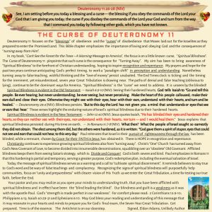 Bible ProphesyFrom the AuthorSound DoctrineSpiritual BlindnessTurning Away ELDON ADAMS | December 17, 2024 THE CURSE OF DEUTERONOMY 11 ← FAITH IS NOT TUNNEL VISION FORGIVENESS AND THE FRUIT OF THE SPIRIT →