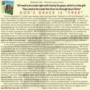 Bible ProphesyFrom the AuthorSound DoctrineSpiritual BlindnessTurning Away ELDON ADAMS | February 26, 2025 GOD’S GRACE IS FREE ← UNVEILING TRUE FAITH AND SALVATION GET WISDOM →
